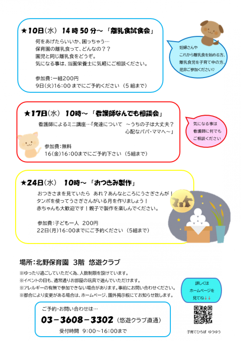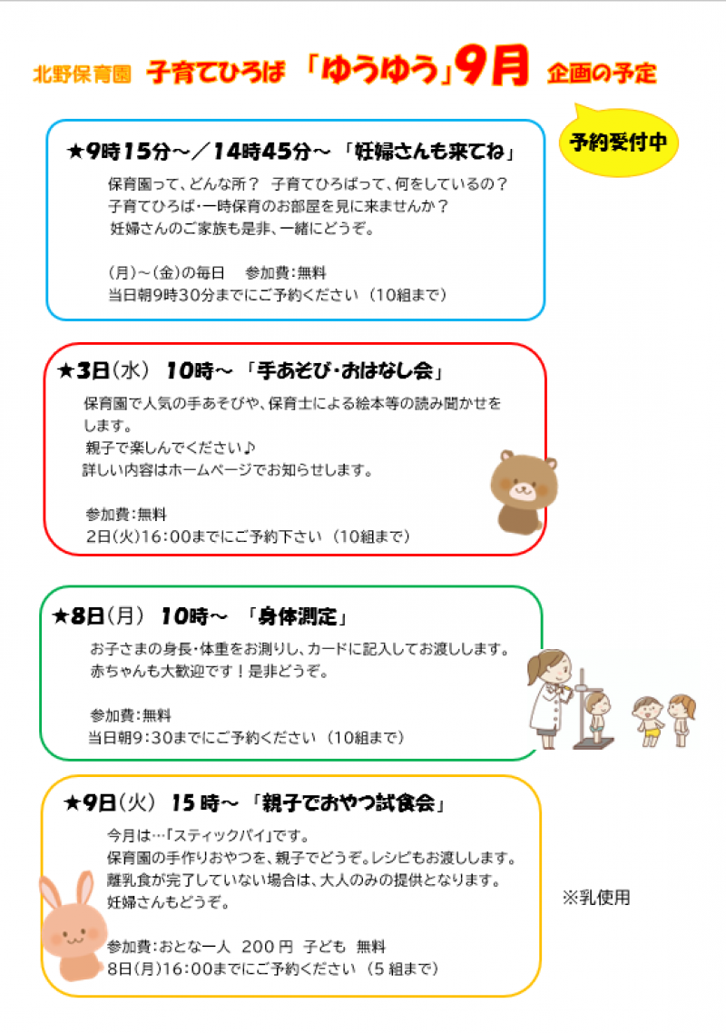 ※その他、子育て相談などいつでもお受けしておりますので、お気軽にお声掛けください。