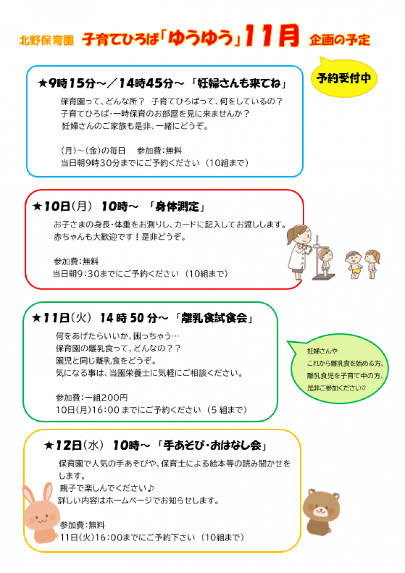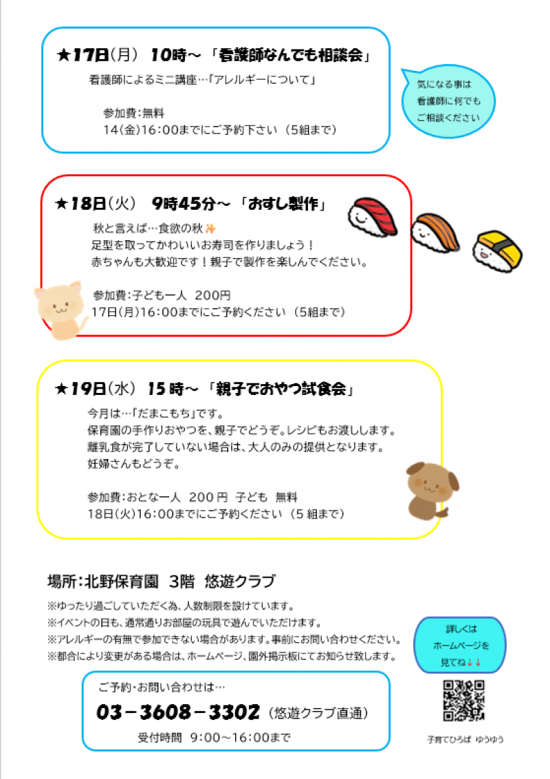 ※その他、子育て相談などいつでもお受けしておりますので、お気軽にお声掛けください。