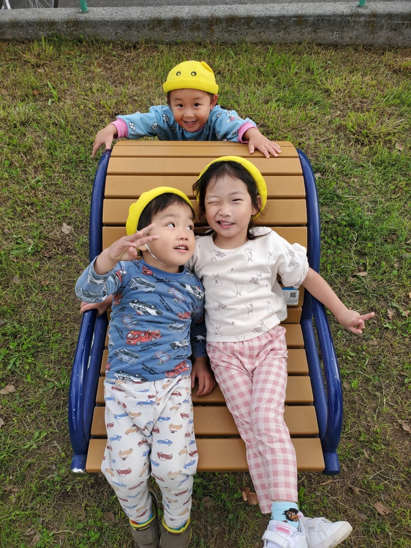 2025.10.24 保育園 高砂7丁目公園で、いっぱいいっぱい遊んできました☆彡 全員で丸くなってお約束を聞いて、滑り台ですべったり、健康器具!?でみんなで仲良しごっこしたり、月山でゴロゴロころがったり、ボール遊びしたり、シャボン玉追いかけっこしたり、他にもいっぱいの遊びを楽しみました☆彡最後は、お母さん・お父さんが作ってくれたお弁当を食べて、満足して保育園に帰りました♪