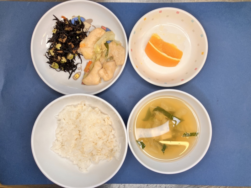 2025.12.22 今月の給食 12月献立紹介 今月の給食の紹介です!この日のメニューはごはんけいちゃんひじきの煮物すまし汁果物でした◎野菜もたくさんの献立でしたが、子ども達も食べ易かったのか、よく食べてくれました^^けいちゃんは、給食では甘味噌の味付けでしたが、醤油や塩味等バリエーションも豊富でアレンジしやすいです。ぜひお家でも試してみて下さい***