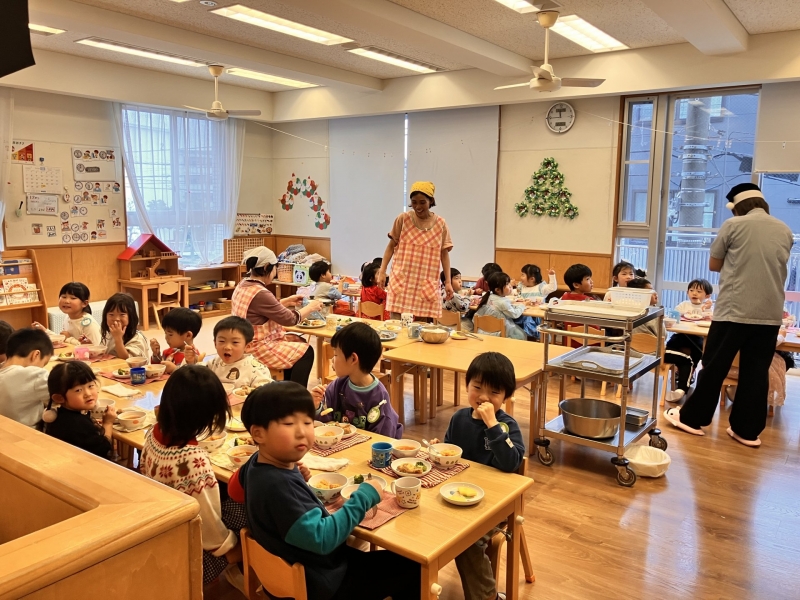すべて 保育園 子育てひろば 今月の給食 利用者アンケート 2025.12.25 今月の給食 クリスマスメニュー 今日は、クリスマスメニューです◎ケチャップライスフライドチキンにこちゃんポテトブロッコリーミネストローネ果物いつもとは違う机の配置で、パーティー風でした!給食でもクリスマスを感じて、子どもたちが喜んでくれたら嬉しいです***年内は、これで最後の給食室のブログになります。今年もありがとうございました!来年もどうぞよろしくお願いいたします^^ お知らせ一覧を見る 2025(155) 2024(124) 2023(43) 2022(47) 2021(39) 2020(57) 2019(40) 2018(5) 2017(21) 2016(49) 2015(44)