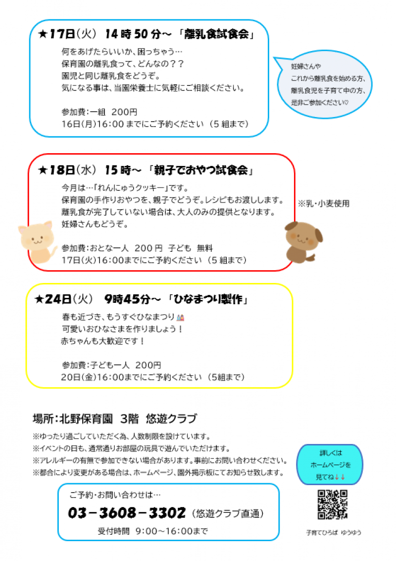 子育てひろば 「ゆうゆう」では、親子で楽しんでいただけるイベントや身体測定、保護者の方に役立つイベントなどを、毎月企画しています。
