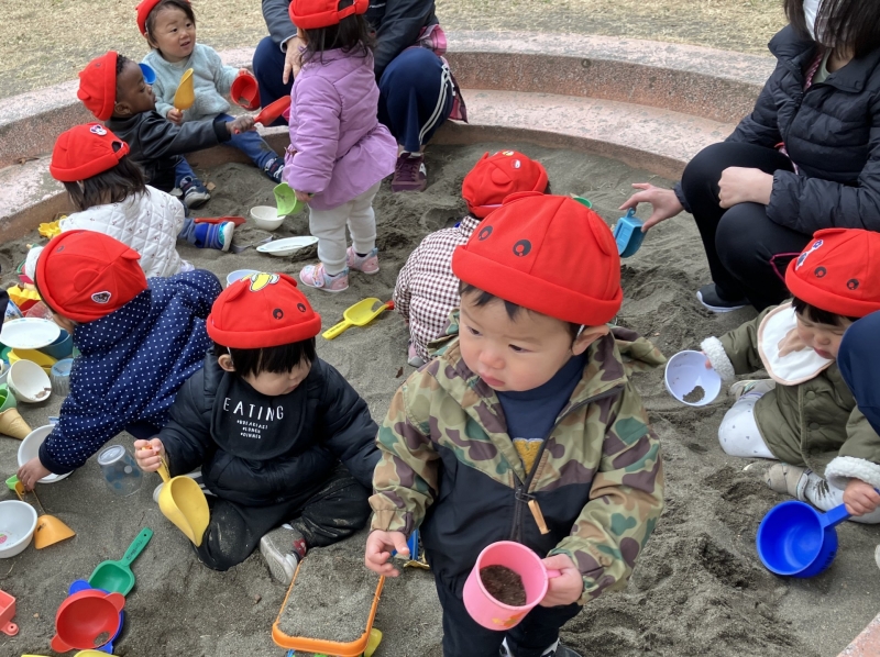 すべて 保育園 子育てひろば 給食室 利用者アンケート 2026.01.20 保育園 柴又二丁目公園へ行って保育園で初めて砂遊びをしました!! 保育園初めての砂場遊びをしました!最初は警戒している子もいましたが、慣れてくると手で砂を掴んでみたりスコップを使ってお皿やコップに砂をいれておままごとのようにして楽しんでいましたよ。保育士と大きな穴を掘って楽しんでいる子もいました♪ お知らせ一覧を見る 2025(169) 2024(124) 2023(43) 2022(47) 2021(39) 2020(57) 2019(40) 2018(5) 2017(21) 2016(49) 2015(44)