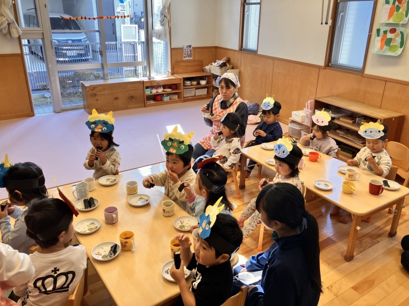 すべて 保育園 子育てひろば 給食室 利用者アンケート 2026.02.03 給食室 節分メニュー 今日は節分メニューでした◎いわしごはん五目豆おひたし呉汁みかんです^^午後のおやつは恵方巻で、今年は南南東を向いて食べました◎おかわりもたくさんしてくれていて、よかったです*** お知らせ一覧を見る 2025(169) 2024(124) 2023(43) 2022(47) 2021(39) 2020(57) 2019(40) 2018(5) 2017(21) 2016(49) 2015(44)