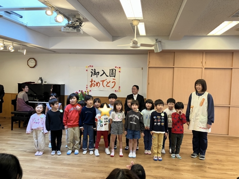 2026.04.01 保育園 ご入園おめでとうございます! 令和8年度入園式を行いました。今年度は15名の新しいお友達が北野保育園の仲間入りです!保育園を代表して年長さんがお楽しみを披露してくれました。少し緊張していた年長さんでしたが、素敵なメッセージと歌を歌ってくれましたよ。新入園児のみなさん、これからよろしくね!これから楽しい思い出を一緒に作っていこうね(*^-^*)